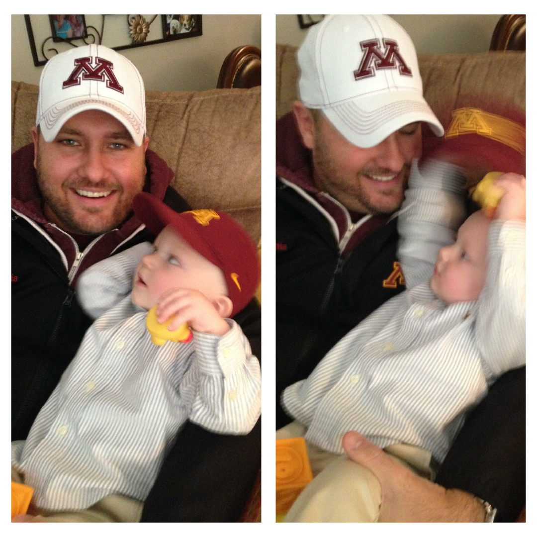 As far as the Gophers game, we were able to watch the first half of the game out with friends here in town and the second half just the three of us.  Unfortunately, the Gophers lost.  But when it comes to spending family time with Mac and mommy, I won.